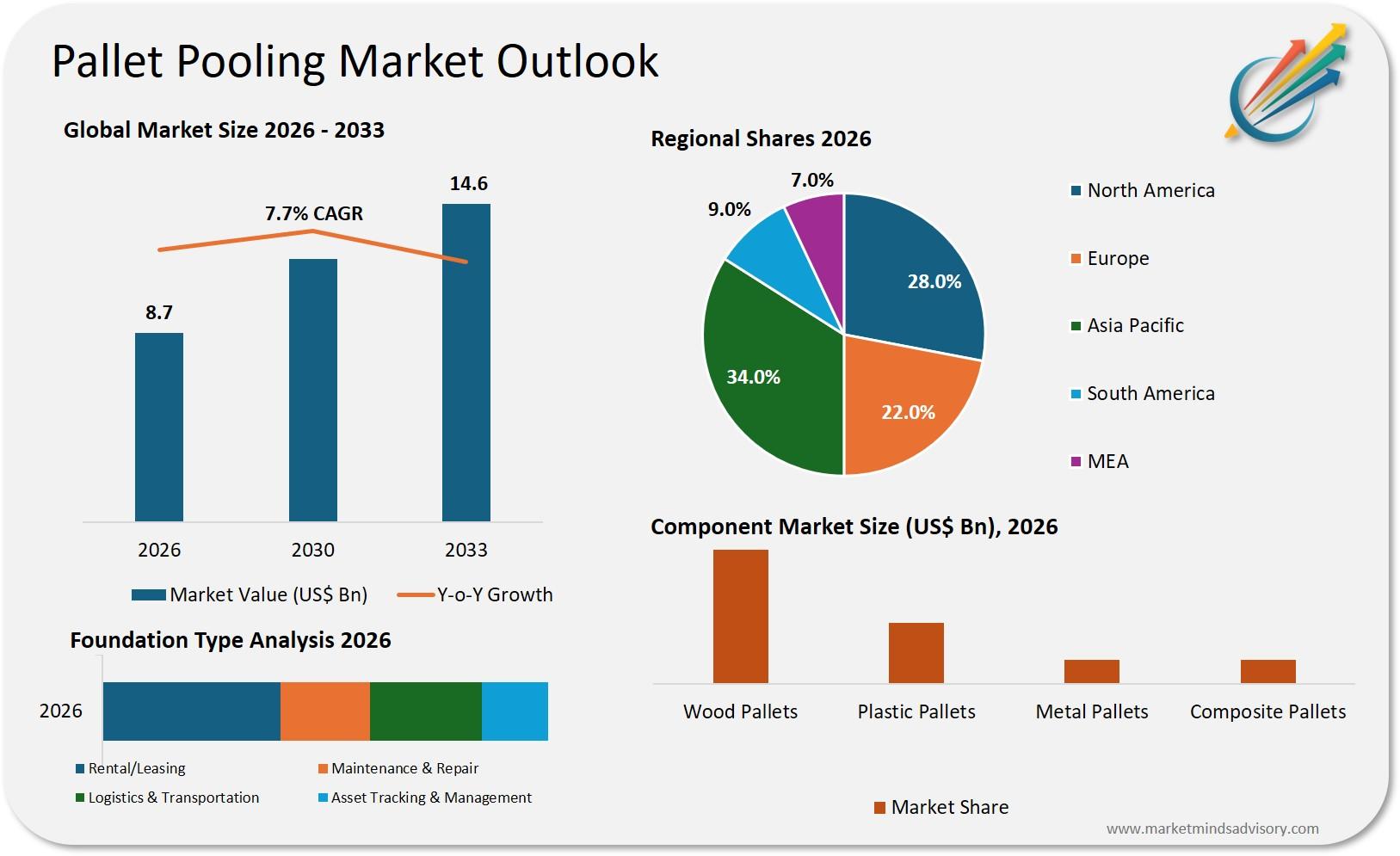·         The pallet pooling market is forecast to register a 7.7% CAGR between 2026 and 2033.