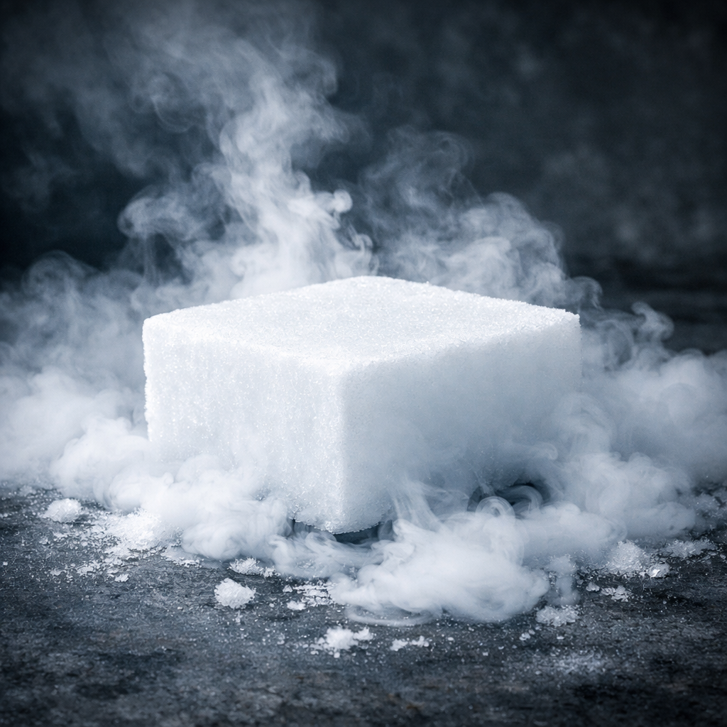 Dry ice is solid carbon dioxide that sublimates directly from solid to gas at normal atmospheric pressure at a surface temperature of approximately minus 78.5 degrees Celsius, a physical behavior that creates its entire commercial value. This sublimation rather than melting is not an incidental property: it is the reason dry ice leaves no liquid residue, maintains constant ultra-cold temperature throughout its service life, and can be used in applications where water contamination from melting conventional ice would damage products, create hygiene risks, or complicate logistics operations. The absence of a liquid phase eliminates drain requirements in shipping containers, prevents the soggy packaging degradation that melting ice causes, and removes the bacterial contamination risk that standing melt water creates in food transport environments.