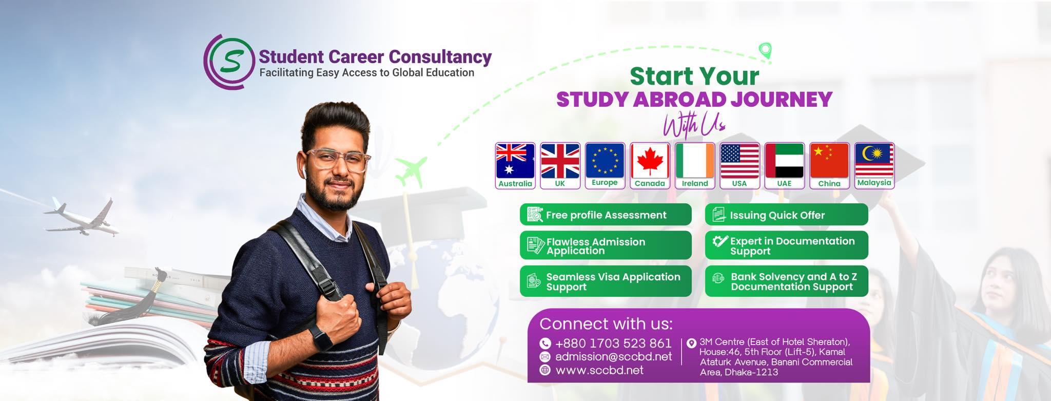 Student Career Consultancy (SCC) is a trusted Education Consultancy Firm in Dhaka, Bangladesh, helping students study abroad with expert guidance, university admission support, and visa processing for the UK, USA, Canada, Australia, and beyond.